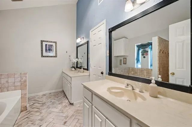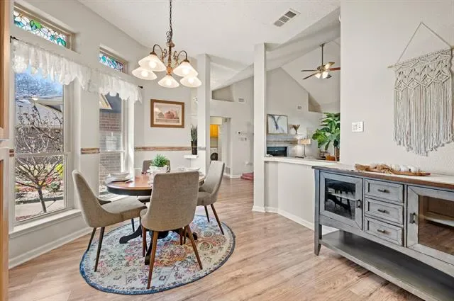 Fall in love with this charming one-story home located in Keller ISD. Vaulted ceilings and updated flooring in the living and dining areas create a bright, open feel as soon as you walk through the front door.