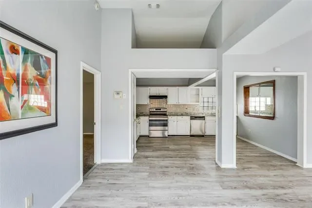 Nicely updated 3-bedroom, 2-bathroom home located in Keller ISD featuring an open-concept layout with vaulted ceilings and abundant natural light. The spacious kitchen offers stainless steel appliances and granite countertops, providing ample prep space and seamlessly flowing into the main living and dining areas, making it ideal for both everyday living and entertaining. The primary suite includes double vanity sinks and a well-designed layout, offering a comfortable and functional retreat. Secondary bedrooms are generously sized and provide flexibility for guests, a home office, or additional living space. This move-in ready home offers a functional floor plan with a great balance of openness and privacy, all in a convenient location close to shopping, dining, and major highways.