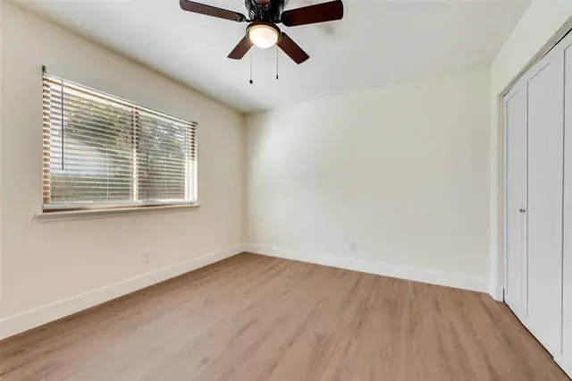 Charming open floor plan home with lots of 2025 updates. Kitchen has new quartz countertops, beautiful brushed gold sink, marble backsplash, freshly updated with painted cabinets and shelving, new microwave. The bathroom is straight out of a designer spa with all new updates and fixtures. The flooring throughout the home is new with new baseboards and trim. New window treatments. All new hardware on doors and brand new front door. The 2 bedrooms are spacious with great windows and new lighting, door hardware, ceiling fans, etc. The home’s HVAC works great with newer thermostat. Tankless water heater. Roof is brand new 2025 so it should have plenty of life on it. Exterior of the home has been painted and stained in 2025. New front landscaping. Mature front tree providing great shade. Newer washer and dryer included.