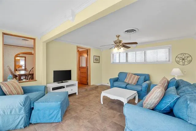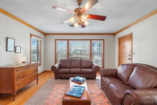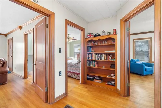 Step inside to discover original hardwood floors and stunning carpentry throughout, creating warmth and character rarely found in homes today. The inviting living room features a cozy fireplace, perfect for relaxing evenings, while a second living area offers flexible space for a game room, office, or additional entertaining area.