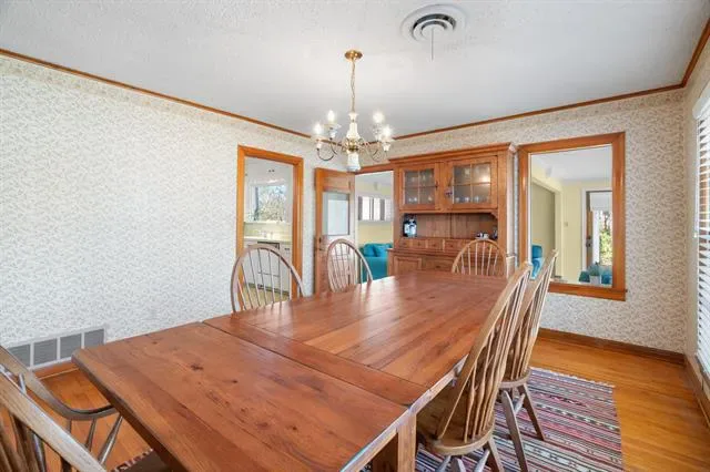 The home also features a large formal dining room ideal for hosting gatherings and holiday meals. The spacious kitchen is truly a chef’s dream, offering plenty of room to cook and entertain, highlighted by a large picture window above the sink overlooking the backyard.