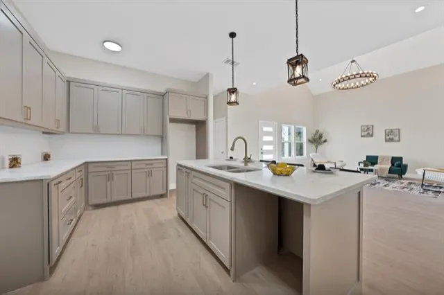 Chandelier, Double Vanity, Kitchen Island, Open Floorplan, Pantry, Vaulted Ceiling(s), Walk- In Closet(s)