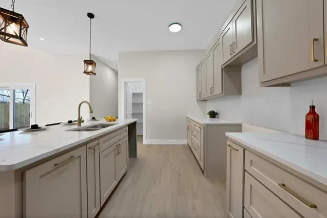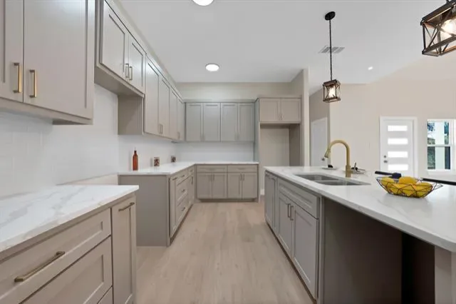The open-concept kitchen showcases a large island, quartz countertops, and custom cabinetry, Upstairs, you’ll find three additional bedrooms, offering flexible space for family, guests, or home office use.