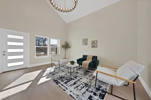 Stunning two-story home offering 4 bedrooms and 2.5 bathrooms with a thoughtfully designed layout and modern finishes throughout. The main living area features soaring ceilings highlighted by a statement chandelier, creating a striking and welcoming focal point.