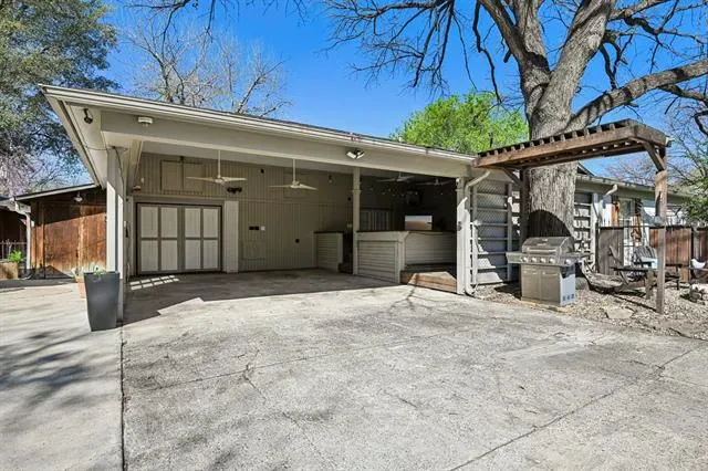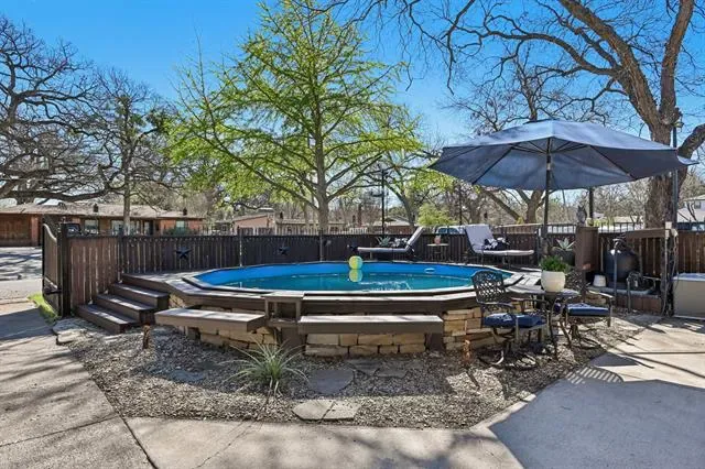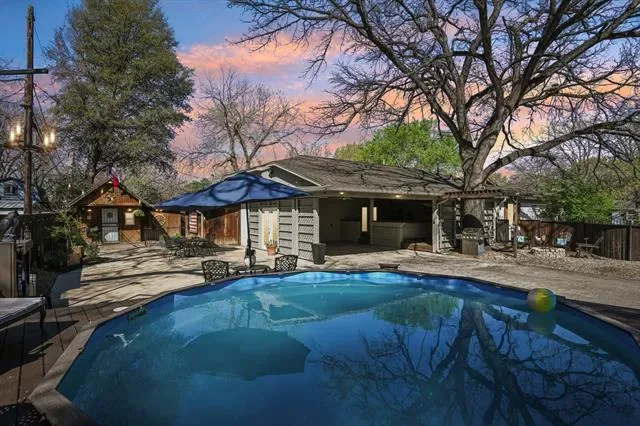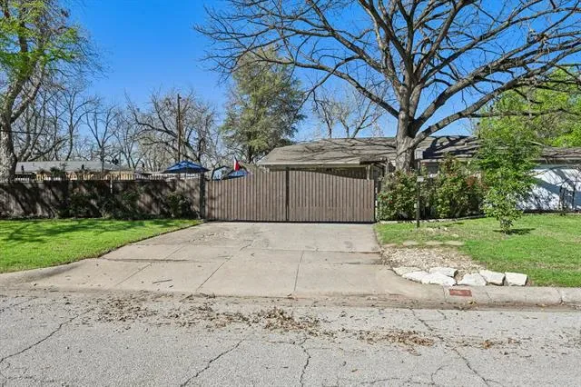 Discover this stylish mid-century home on a large corner lot shaded by a magnificent Bur Oak that creates a beautiful canopy over the property. An electric privacy gate welcomes you to a backyard designed for relaxing and entertaining, featuring a pool, campfire pit, and space for BBQs. Inside, the 3-bedroom, 2-bath layout offers hardwood floors, fresh paint, updated light fixtures, and living room built-ins that add charm and functionality. The spacious primary suite includes a walk-in closet and an ensuite bath with double sinks. Recent improvements include updated tiling, new toilets, drywall repairs, new exterior paint, and pool updates including a new liner, stained pool decking, and fencing. Located just minutes from Melva Campbell Park and enjoy easy access to the lifestyle and dining along Camp Bowie Blvd, only 5 minutes from the Kimbell Art Museum and 10 minutes from the Fort Worth Stockyards and Sundance Square.