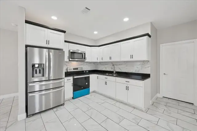 Upon arrival, the property’s corner-lot position provides additional outdoor space for landscaping, recreation, or future expansion. The front exterior presents a well-kept façade complemented by a neatly-manicured lawn. Inside, the residence features a spacious living area with abundant natural light and an open concept that connects seamlessly to the dining and kitchen spaces. The kitchen comes fully equipped with all major appliances, providing a turnkey experience and simplifying daily living.