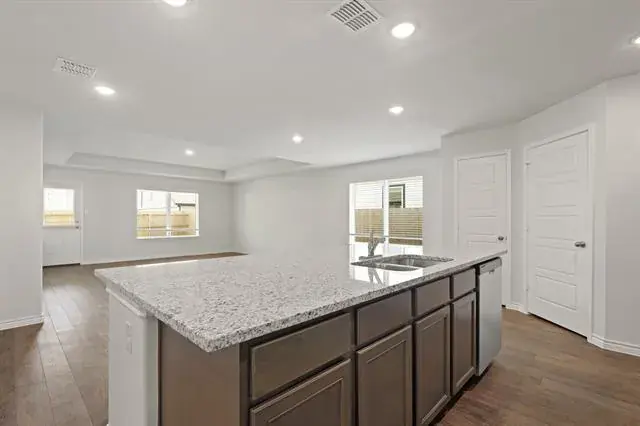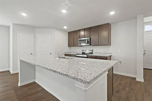 Welcome home to Sycamore Landing in Fort Worth, TX. The Palermo is a charming, thoughtfully designed one-story home that offers comfort, convenience, and style all on a single level. With 3 bedrooms, 2 bathrooms, and a 2-car garage, this home delivers the perfect balance of functionality and easy living. Ideally located just south of Fort Worth, Sycamore Landing offers quick access to I-35, I-20, and Chisholm Trail Parkway—making daily commutes and weekend plans simple and stress-free. Inside, vinyl plank flooring flows throughout the main living areas, paired with included privacy blinds to help your home feel complete from the start. The gourmet kitchen is designed to bring everyone together, featuring a spacious island overlooking the dining and family rooms, 42-inch cabinetry, granite countertops, and stainless-steel appliances—creating an open, welcoming space for everyday meals and special occasions alike. The Owner’s Suite provides a relaxing retreat with double sinks and granite countertops, a separate tub and shower, and a spacious walk-in closet. Step outside to enjoy the covered patio, while the full sprinkler system helps keep your yard looking its best with ease. Blending modern finishes, smart design, and an unbeatable location, the Palermo in Sycamore Landing is an inviting place to settle in and feel right at home. Schedule your visit today!