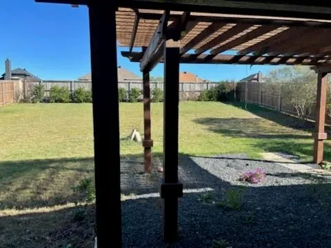 The spacious backyard is designed for both relaxation and entertaining, featuring an oversized patio and an inviting pergola that creates the perfect setting for gatherings or quiet evenings outdoors.