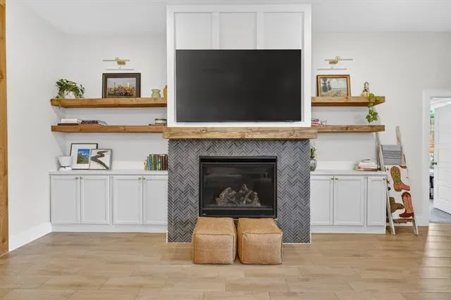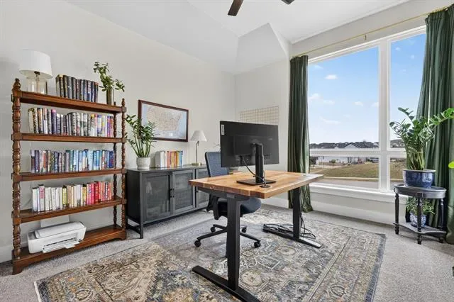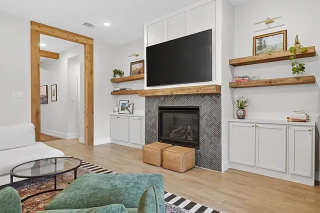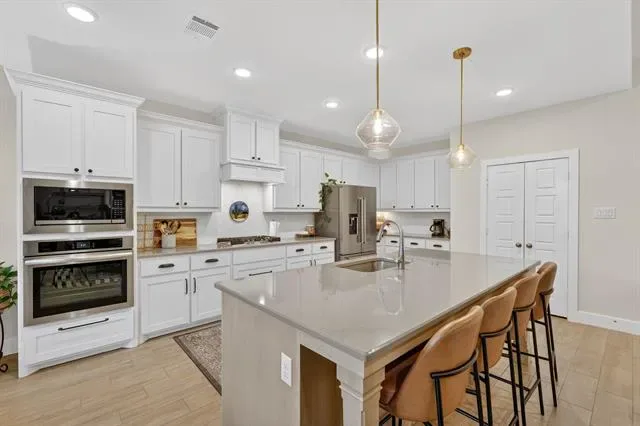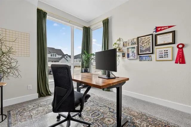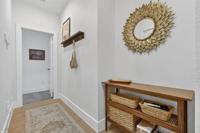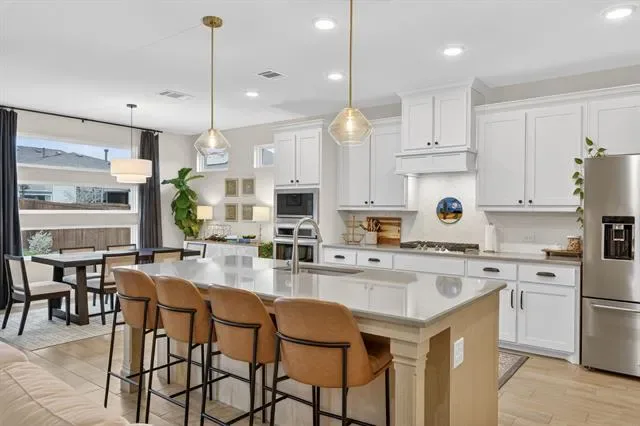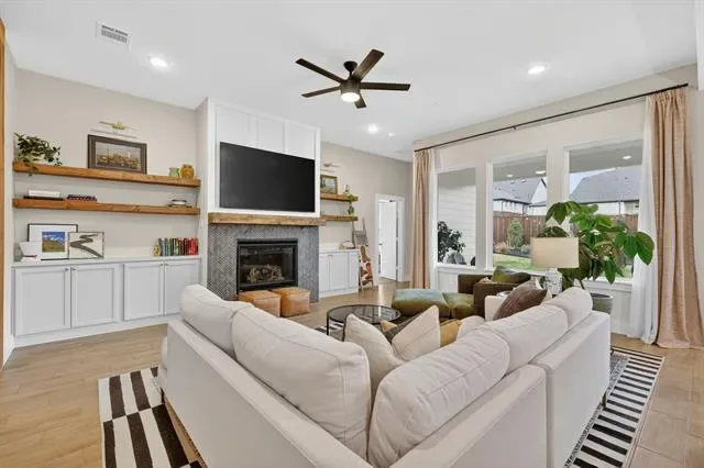 Built just two years ago, this home combines modern construction with thoughtful upgrades in the Talon Hills community near Eagle Mountain Lake. The Graham Hart Mayfield floor plan offers approximately 2,603 sq ft with 4 bedrooms, 3.5 bathrooms, a private study, and a rare 3-car garage—a layout that balances open living with functional separation. Natural light fills the home through expansive windows, enhancing the open floor plan and creating a bright, comfortable living environment. Wood-wrapped columns and ceiling beams add architectural character, while floating shelves and built-in details around the fireplace create a clean focal point in the main living area. The kitchen and dining areas flow seamlessly, anchored by a generous island suited for everyday meals or entertaining. Clean cabinetry, modern lighting, and stainless appliances keep the space polished and practical. The primary suite is privately positioned at the back of the home, featuring dual vanities, a soaking tub, separate shower, and a spacious walk-in closet. Additional bedrooms offer flexibility for guests, family, or workspace needs. Outside, the fully landscaped yard and covered patio extend the living space, with an app-controlled sprinkler system for easy maintenance. Enjoy a community pool, clubhouse, parks, playground, and walking trails, with close proximity to Eagle Mountain Lake, the Fort Worth Nature Center &' Refuge, and shopping and dining at Alliance Town Center and Presidio Junction, plus convenient access to major commuter routes. Comparable new construction start in the mid-$500s before lot premiums and upgrades—this home offers added improvements already completed, providing immediate value without the added cost, time, and decisions of building new.