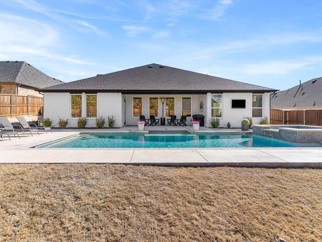 Dive into your private backyard oasis featuring a sparkling resort style pool with an attached spa-hot tub — the perfect place to cool off during Texas summers or unwind year-round. Designed for both entertaining and everyday enjoyment, the outdoor space creates a true resort-style experience at home.
