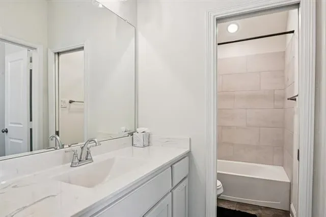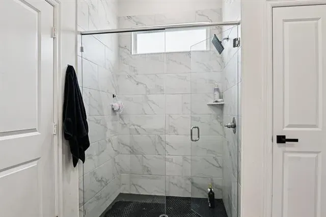 The primary suite is privately located on the first floor, offering a spacious retreat with an oversized shower, double vanities, and a large walk-in closet.