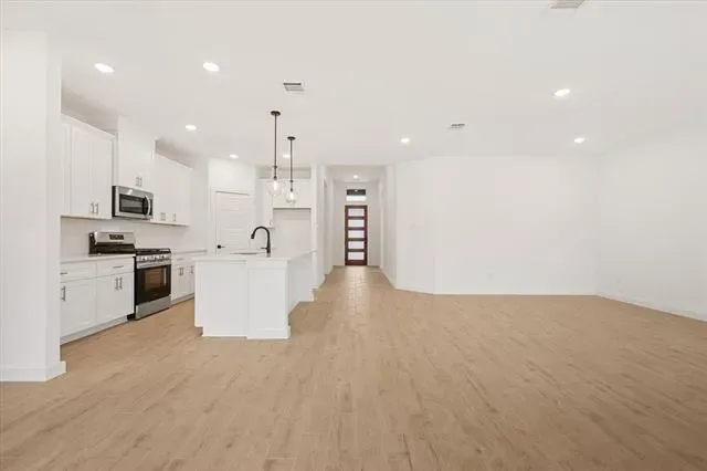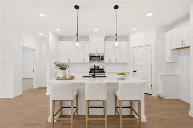 This 3 bedroom, 2 bathroom home features an open concept design that seamlessly connects the living, dining, and kitchen areas, creating a spacious and inviting atmosphere ideal for both everyday living and entertaining. The kitchen is equipped with quartz countertops, modern appliances, and ample cabinet space.