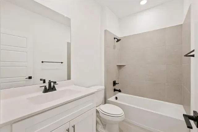 The private primary suite offers a large walk in closet and an en-suite bathroom with dual sinks and a spacious walk in shower. Two additional bedrooms provide flexibility for guests, family, or a home office, along with a well-appointed secondary bathroom.