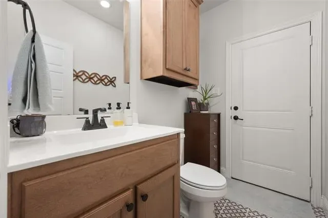A flexible fifth bedroom sits near a half bath that has direct access to the side yard—ideal for future pool plans or outdoor entertaining.