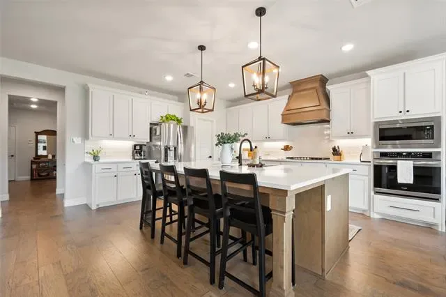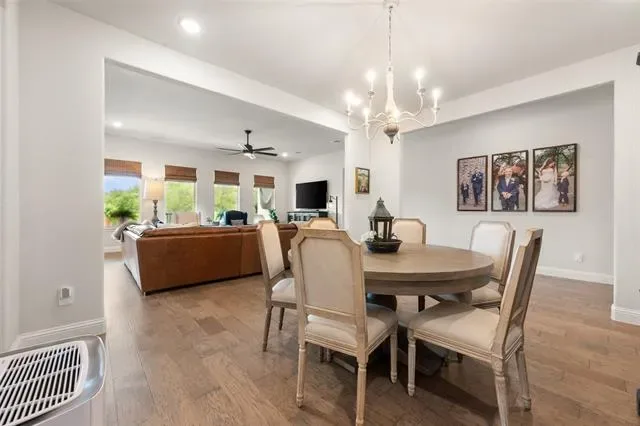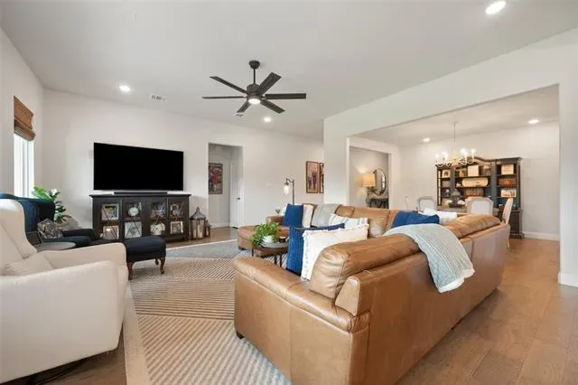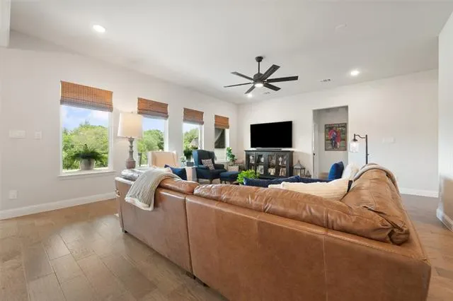 Unwind on the covered back porch with double ceiling fans or step into the large, private backyard backing up to a greenbelt. This home effortlessly blends style, space, and practicality—offering everything you need to live, relax, and entertain in comfort. with so many thoughtful upgrades and flexible living spaces, it''s a home you will want to experience in person. Complete list of upgrades in Transaction Docs. Buyer &' Buyer''s Agent to verify all measurements, schools and tax info.