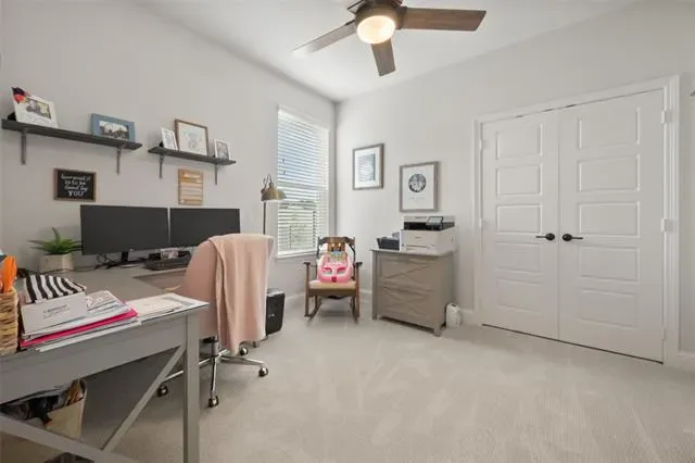 Inside is a spacious floorplan where two bedrooms share a Jack-and-Jill bath, while a third bedroom sits nearby with its own full bath just outside the door—perfect for guests or older children. The private primary suite offers a retreat with a spa-like ensuite and an oversized walk-in closet.
