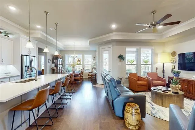 Welcome to 7641 Murcia Drive in the premier 55+ gated community of Tavola Park-Ladera. This exceptional 2-bedroom, 2-bath home offers 1,902 sq ft and a thoughtfully designed living space with exceptional finishes throughout. The open-concept floor plan includes a spacious living room, a beautiful kitchen featuring stainless appliances and a very generous island with seating. The dining area is charming and perfectly designed with natural light for relaxed meals. Retreat to your primary suite having access to the laundry area and the spa-inspired bath and expansive walk-in closets. Don’t miss the extra plug in the pantry and the 60 amp plug in the garage for electric automobiles. Home is completely encapsulated with spray foam insulation in the entire home and garage area. This home is situated in a beautifully maintained community offering resort-style amenities such as a clubhouse, pool, pickleball, grills, putting green, dog park, pond, fitness center, clubhouse, social events, and scenic walking trails. HOA includes full front and back yard maintenance (mowing and fertilizer and flowers in flower beds seasonally) and full use of community features. Our Local Lender is offering Complimentary Refinancing for Qualified Buyers! Buy this home now and when interest rates decrease, refinance! Schedule your showing today and don’t miss this home priced to sell!