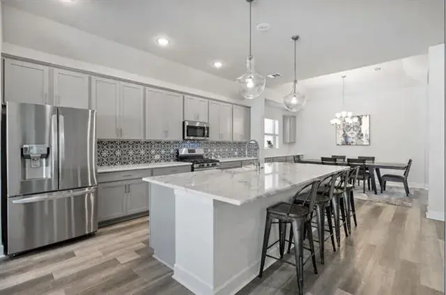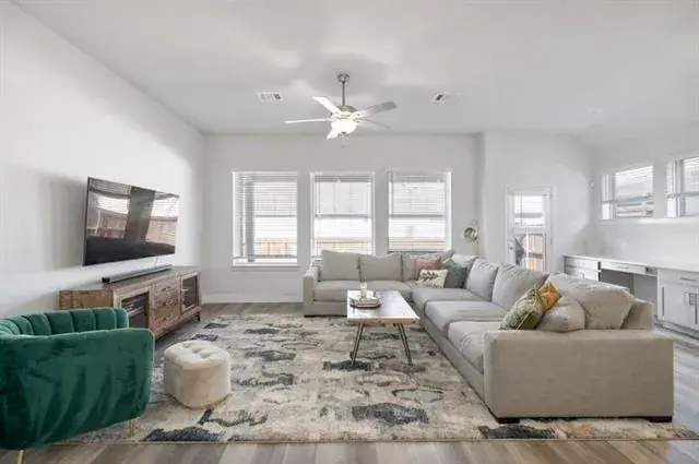 Welcome home to this beautifully designed residence in the highly sought-after Tavolo Park community of Fort Worth. From the moment you step inside, you’ll feel the openness and warmth created by the expansive open-concept layout, perfect for everyday living, entertaining, and making memories. The heart of the home flows effortlessly from the living area to the kitchen and dining space, while a versatile flex room offers endless possibilities as a home office, playroom, workout space, or second living area designed to adapt to your lifestyle. The private primary suite is a true retreat, complete with a custom-designed closet that offers both function and luxury, giving you the organization and space you’ve been dreaming of. Situated on a desirable corner lot, this home provides added privacy and curb appeal while still being just steps away from everything Tavolo Park has to offer. Enjoy access to an impressive amenities center, resort-style pool, scenic walking trails, and playground creating a neighborhood where community and connection truly thrive. This is more than a house, it’s an opportunity to live in one of Fort Worth’s most vibrant master-planned communities.