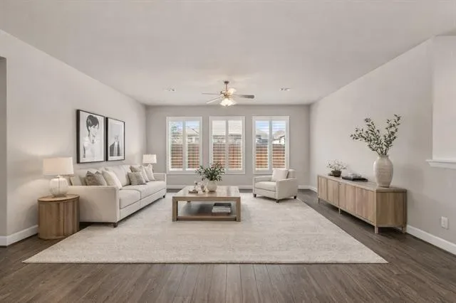 7508 Pondview Lane is an extremely well-maintained two-story home located in the Tavolo community of Fort Worth. Built in 2018, the home offers 4 bedrooms, 3 full bathrooms, and just over 3,300 square feet of living space with a functional and flexible layout. The main level features an open living area that flows into the kitchen and dining space, making it ideal for everyday living and entertaining. The kitchen includes ample counter space, abundant cabinetry, a large pantry, and an island that works well for both prep and gathering. The primary suite is located on the first floor and offers privacy, a spacious ensuite bath, and a walk-in closet. An additional bedroom and full bath downstairs are well suited for guests. Upstairs, there are two additional bedrooms, a full bathroom, and a large game room or secondary living area. Outside, the covered patio and fenced backyard provide a comfortable space to relax or entertain. Additional features include a three-car garage, sprinkler system, and ample storage throughout. Conveniently located near shopping, dining, and community amenities, this home offers a practical layout, generous space, and a great location within Tavolo.