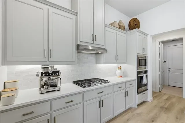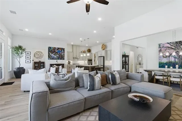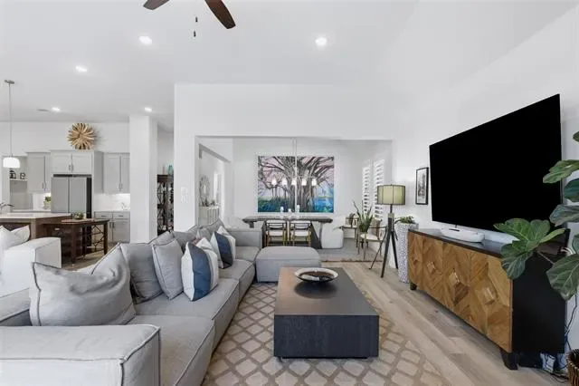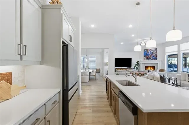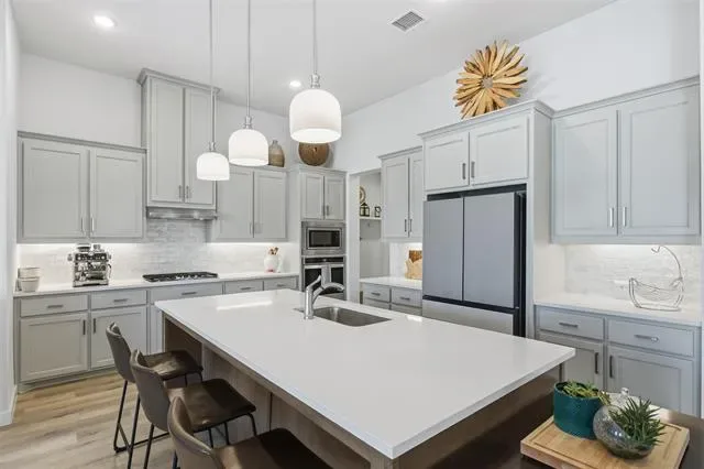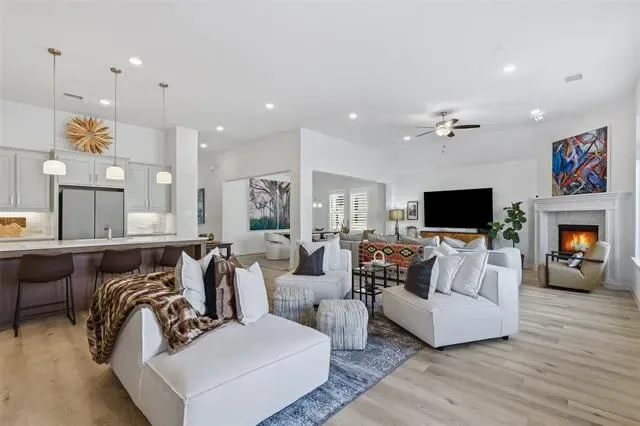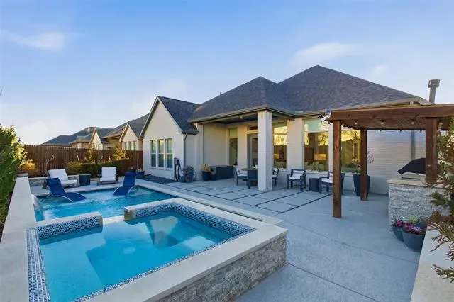 This home surpasses new construction with premium upgrades and impeccable condition throughout. Located in Tavolo Park, this 4 bedroom home offers a seamless open floor plan for modern living. The spacious great room showcases a wall of windows flooding the space with natural light and has unobstructed views of the backyard, upgraded with electric shades for convenience and the remaining windows are fitted with designer shutters. Step outside into your private backyard oasis, thoughtfully designed featuring lush landscaping with solar uplighting, an inground heated pool with two water features, lounge deck that accommodates a sun umbrella, and a separate hot tub. Underneath the pergola is a built-in, top of the line, Alfresco brand grill equipped with a rotisserie attachment, deep fryer, and warming drawer. It also has a built-in trash bin and supply drawers for convenience. It’s the ideal space for relaxation or entertaining. The almost new Restoration Hardware outdoor furniture will be negotiable with home and is valued at approximately $20,000. The extra-deep refrigerator will convey at closing. Furniture and artwork, most of which are in like-new condition, may be negotiated for purchase.