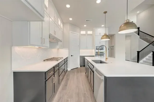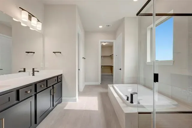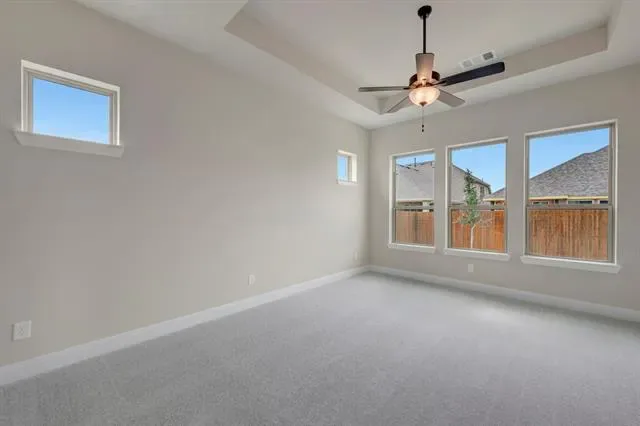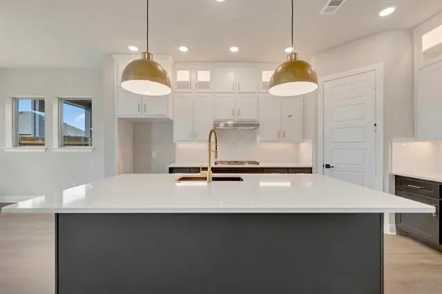 The Primrose, built by David Weekley Homes in Tavolo Park, features 5 bedrooms, 4 bathrooms, and a 4-car garage! This home offers a spacious and luxurious living experience with an open-concept design, perfect for both everyday living and entertaining. The large picture windows seamlessly connect the interior to the exterior, where a covered back patio awaits, ideal for outdoor gatherings or relaxation. The chef’s kitchen provides a dine-up island and plenty of storage and prep space, complete with stacked cabinetry. Begin and end each day in the paradise of your Owner’s Retreat, which features an en suite Owner’s Bath and walk-in closet. Enjoy the additional space offered by the additional secondary bedrooms. Contact the David Weekley Homes at Tavolo Park team to build your future with this beautiful new construction home in Fort Worth, TX!