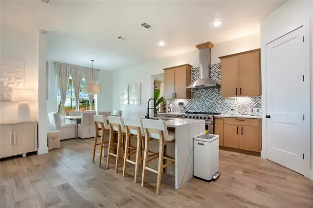 Step inside to discover sun-drenched living spaces accented by gorgeous flooring, clean lines, and expansive windows that invite the outdoors in. The modern chef’s kitchen features a commercial-grade range, large island, and open-concept flow into the living and dining areas—perfect for entertaining or simply enjoying everyday life in style.