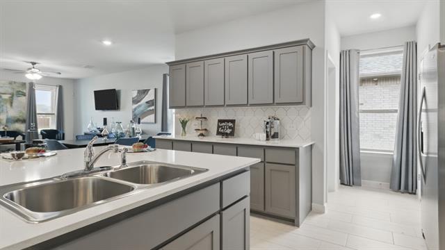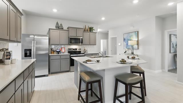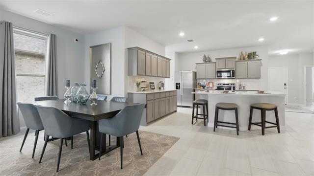 Beautiful new D.R. Horton home in the Terra Trace community located in Crowley and Crowley ISD! This single-story Kennedy floorplan Elevation B, has a quick estimated Winter completion. It offers 4 bedrooms, 2.5 bathrooms, and a 2-car garage with an open-concept layout that connects the family room, dining area, and modern kitchen for everyday comfort and functionality. The kitchen features quartz countertops, 36” upper cabinets, stainless steel appliances, electric range, stainless steel drop-in sink, a large center island, and a walk-in pantry, creating a perfect space for cooking and entertaining. The private primary suite includes an en-suite bath with dual quartz vanities, an oversized shower, and a walk-in closet located off the bathroom. Quartz vanity tops are also included in the secondary bathrooms, while luxury vinyl plank flooring is installed throughout all main areas and wet zones for durability and style. Built with energy-efficient construction and equipped with America’s Smart Home Technology, this home also includes exterior features such as a covered back patio, full sod, sprinkler system, privacy fencing, and landscaping. Future amenities include resort style swimming pool and playgrounds. Easy access to Chisholm Trail Pkwy, 820 and I-20 West, and close proximity to Shops, Dining, Fort Worth Stockyards and Zoo.
