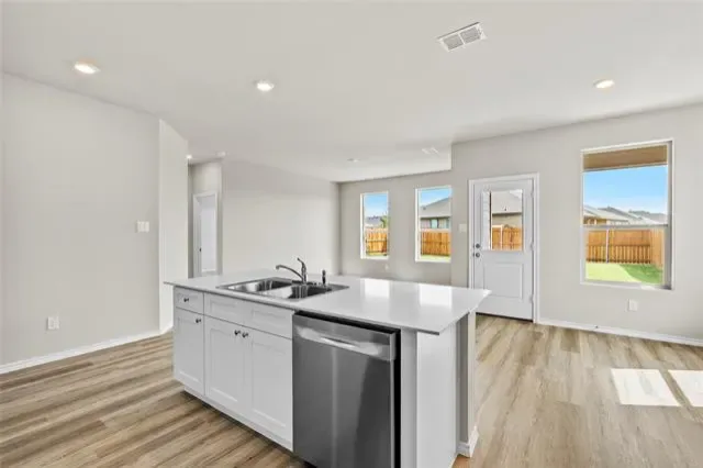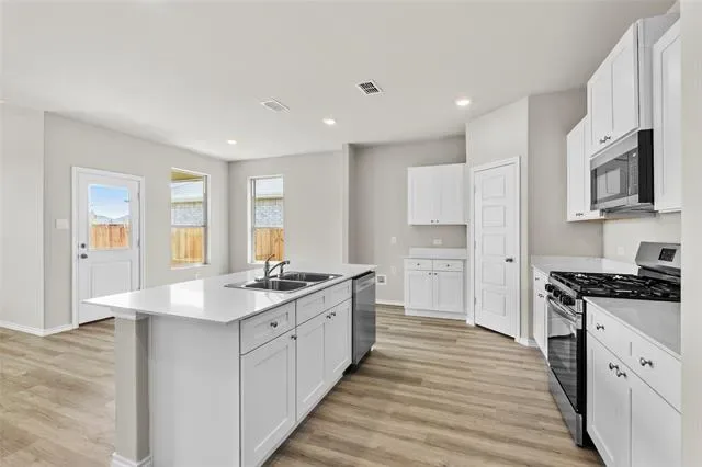 The Oxford plan is a one-story home featuring 4 bedrooms, 2 baths, and approx. 1602 square feet of living space. The front porch and foyer leads to an open-concept kitchen, dining area, and family room. The kitchen includes a breakfast bar with beautiful granite counter tops, stainless steel appliances, gas cooking range, and a walk-in corner pantry. The separate utility room is located just off the kitchen. The spacious private main bedroom is located off the family room and features an attractive ensuite bathroom with luxury walk-in shower, and walk-in closet. The covered patio is located off the dining room. All secondary bedrooms and second full bathroom are located at the front of the house off the foyer. Additional features include: tankless water heater; Ceramic tile flooring at Entry, Hallways, Kitchen, Living Room, Utility and Bathrooms; and, full yard sod, landscaping and irrigation. This home includes our HOME IS CONNECTED base package. Using one central hub that talks to all the devices in your home, you can control the lights, thermostat and locks, all from your cellular device.
