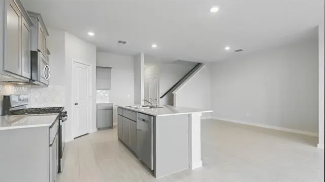 Beautiful new D.R. Horton home in the Terra Trace community located in Crowley and Crowley ISD! This beautifully designed two-story Southhaven floorplan Elevation B, with an estimated Summer completion, offers 4 bedrooms, 3 bathrooms, a spacious game room, and a 2-car garage with an open-concept layout that blends style, function, and flexibility for modern living. The kitchen overlooks the dining and family room and includes quartz countertops, 36” upper cabinets, stainless steel appliances, electric range, stainless steel drop-in sink, a center island, and a walk-in pantry—creating a great space for both cooking and entertaining. The private primary suite is located on the first floor and features an en-suite bath with dual quartz vanities, an oversized shower, and a walk-in closet located off the bathroom. Upstairs, a large game room is surrounded by two secondary bedrooms with walk-in closets, along with a full bathroom. Luxury vinyl plank flooring is installed throughout all main areas and wet zones, and quartz vanity tops are also included in the secondary bathrooms. Built with energy-efficient construction and equipped with America’s Smart Home Technology, this home also includes exterior features such as a covered back patio, full sod, sprinkler system, privacy fencing, and landscaping. Navigate the Dallas-Fort Worth metroplex with ease thanks to nearby access to I-35 West, Chisholm Trail Parkway, and Highway 820. When you''re not exploring the city, unwind at scenic Benbrook Lake, soak up the history and culture at Texas Christian University, or enjoy the vibrant shops and restaurants close by. And for those jet-setting needs, DFW Airport is a convenient 29 miles away.