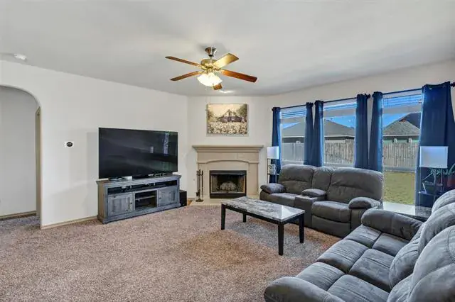 Welcome to this well maintained three bedroom, two bath home built in 2014. Offering 1715 square feet of comfortable living space. Designed with a highly sought after one story, open floorplan, the home seamlessly flows from the kitchen overlooking the living room with a warm and cozy fireplace to snuggle and enjoy your morning coffee. Making it ideal for everyday living and entertaining. The oversized kitchen has an abundant amount of cabinetry, granite countertops, breakfast area, gas stove cooktop for the ideal setup for the chef who enjoys baking and cooking. Step outside to enjoy the covered patio, perfect for entertaining and a relaxing evening. Conveniently located within walking distance to nearby schools and just minutes away from shopping, restaurants, and highways for an easy commute to work and everyday conveniences. This home offers a great blend of comfort, functionality, and location. Washer, dryer and refrigerator are negotiable.