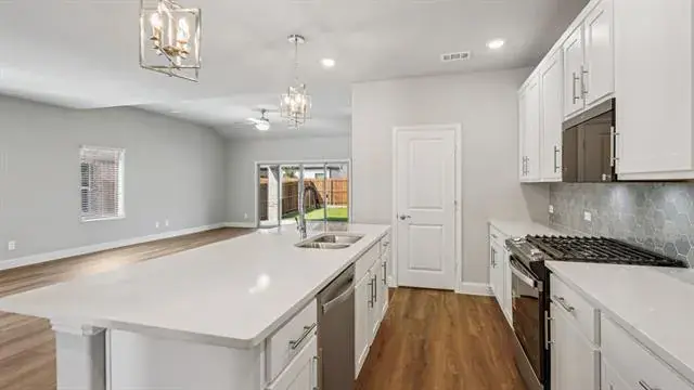 BRAND NEW energy – efficient home Mar 2026! Try a new recipe in the Woodside’s impressive kitchen, complete with a useful island and large pantry. White cabinets with veined white quartz countertops, beige tone EVP flooring with beige tweed carpet. Escape the bustle of the city without being too far from the action. Beat the summer heat at the neighborhood amenity center complete with a resort-style pool. Zoned in the sought-after Crowley ISD, Tesoro at Chisholm Trail Ranch offers six floor plans to fit your family’s lifestyle. We also build each home with energy-efficient features that cut down on utility bills so you can afford to do more living.* Each of our homes is built with innovative, energy-efficient features designed to help you enjoy more savings, better health, real comfort and peace of mind.