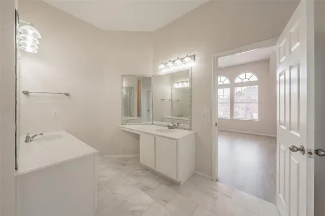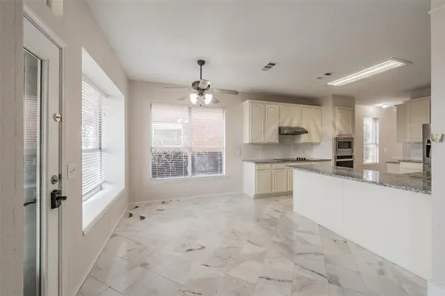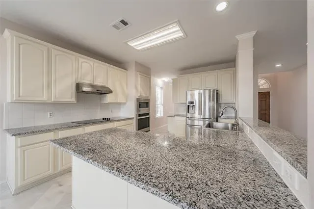 Sweeping views await you at this well-maintained home! You’re king of the hill in the oversized backyard with a huge patio for entertaining. Overlooking the 10th hole, Arnold Palmer’s final design will inspire you with incredible views of the golf-course! The home will welcome you with a charming covered front porch. You’ll appreciate the bright and open floor plan. The spacious living room is perfect for your everyday lifestyle with a cozy gas fireplace! Flow seamlessly into the open kitchen which boasts granite countertops, freshly painted cabinets, stainless steel appliances with a French door refrigerator, pantry, breakfast bar plus nook. A formal dining room provides a wonderful space for entertaining. Downstairs includes space for a private office or fifth bedroom, plus a convenient half bath. Want a game room or second living area? Bring you creativity to the spacious bonus room upstairs! The oversized primary suite features abundant natural light and a luxurious ensuite bath with separate his-and-her sinks, a jetted tub, tiled shower, and a generous walk-in closet. Secondary bedrooms are well-sized and include spacious walk-in closets. Tile flooring tidies-up the wet areas, while luxury vinyl plank flooring extends throughout the upstairs, dining, and living rooms. Enjoy year-round outdoor living with a covered sunroom and outdoor kitchen. Features a two-car garage with epoxy flooring and a new heating and cooling system as upgrades. Conveniently nestled near Highway 35 and Loop 820 with downtown Forth Worth approximately 20 minutes away and just minutes from Keller.