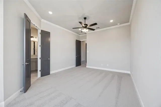The spacious, on-trend kitchen is the star of the first floor, featuring stainless steel appliances, a large island, gas range, double oven, and a separate Butler’s Pantry—perfect for entertaining or everyday meals. A sunlit office, convenient powder bath, and charming front porch round out the main level. Upstairs, a generous game room opens to a private outdoor space, while the primary suite offers a cozy sitting area, oversized windows, spa-inspired bath, and a walk-in closet designed for true comfort. Two additional bedrooms share a Jack-and-Jill bath, with a laundry room nearby for easy living.