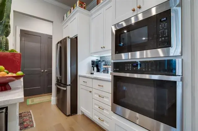 Built in 2023, this beautifully appointed luxury ground-level condo offers modern design, privacy, and an exceptional location just minutes from downtown Fort Worth. The thoughtfully designed floor plan features abundant natural light and an open-concept living and dining area that feels spacious and inviting, ideal for entertaining, working from home, or everyday living. The kitchen includes generous counter space and ample storage, offering both functionality and style for daily use and casual gatherings. There are two private primary ensuite bedrooms, one on the main level and one upstairs, providing flexibility for guests, multigenerational living, or a dedicated home office. Each suite offers a calm retreat with practical, well-designed bathrooms. Two separate living areas enhance versatility and create distinct spaces for relaxation, entertainment, or remote work.