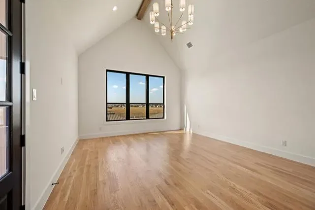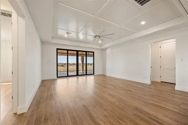 The white oak wood flooring flows seamlessly through all living spaces and into the luxurious primary suite. Step outside to a massive covered patio overlooking your private pool and breathtaking lake views—an ideal space for relaxing or hosting guests.