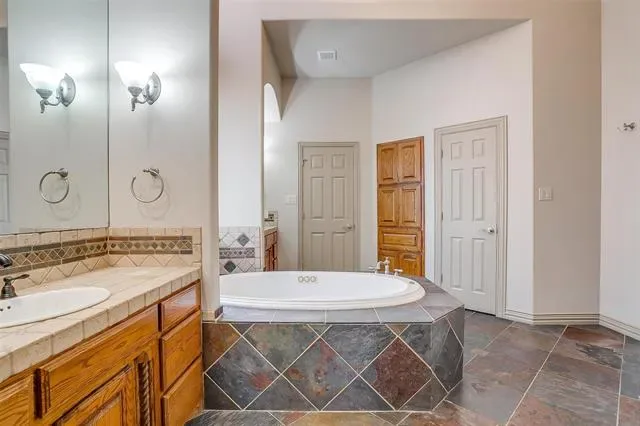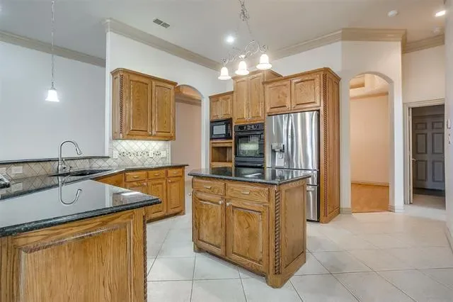 This immaculate custom-built home in Thomas Crossing at Southern Oaks Golf course is one you will not want to miss. Bring your golf cart and clubs. Minutes away from a municipal airport, shopping, dining and I-35. 3 bedrooms, office, formal dining, family room, dining room, kitchen, 2 and half baths downstairs, upstairs mancave with separate entrance. Plantation shutters on all windows; Gorgeous chief kitchen with granite countertops, large cabinets, huge island, double oven, breakfast bar, much more. Master bedroom is located downstairs and features a sitting area, bath with a jetted tub, separate shower and vanities, a very large walk-in closet. Entryway features a very unique ceiling. Quiet and private backyard with space between neighbors and a nice size covered patio with extra storage closet. Parking at your front door, with a side entry garage. 2021 C4 roof was installed with lifetime warranty, and gutters with leaf guard.