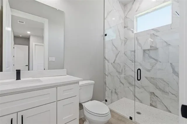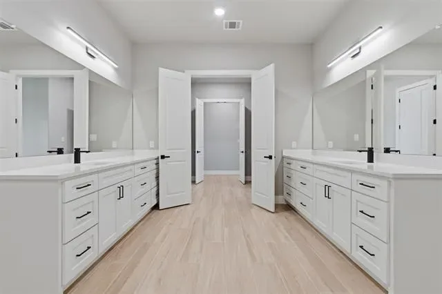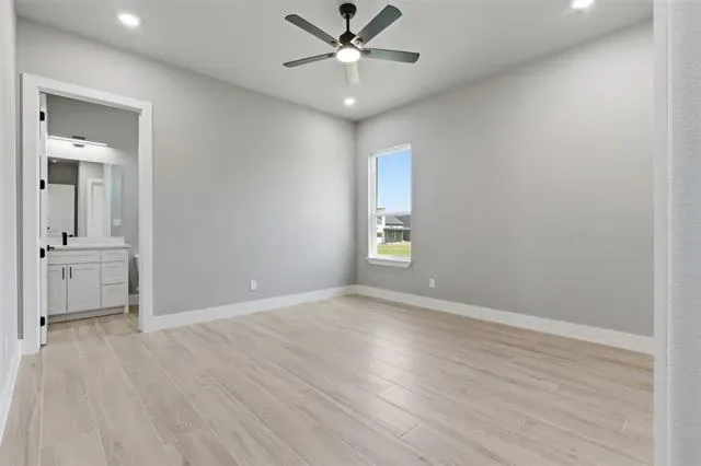 The private primary suite offers a true retreat with vaulted ceilings, a spa-inspired bath, dual vanities, a freestanding soaking tub, oversized walk-in shower, and a large custom closet. Secondary bedrooms are well-sized, and the additional living spaces give you options for fitness, media, guests, or multigenerational living.