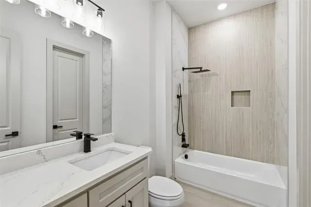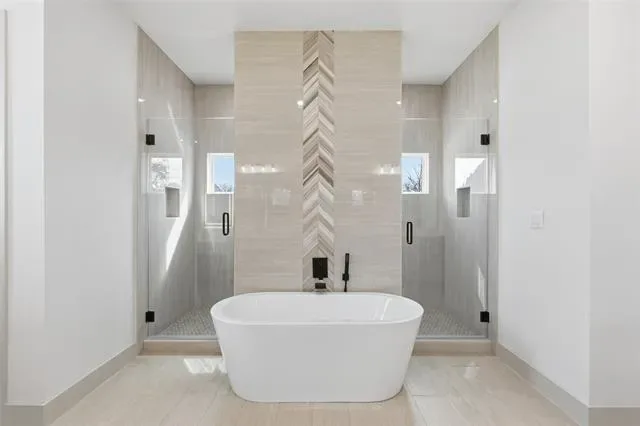 At the heart of the home, the chef’s kitchen combines beauty and performance with an oversized quartz island, custom cabinetry with built-in spice racks and utensil storage, a ZLINE luxury oven and cooktop, a massive walk-in pantry, and an oversized built-in refrigerator—ideal for gathering, hosting, and daily living. The private primary suite offers dual sinks, a dedicated vanity, a soaking tub, and a spa-inspired layout, along with convenient access to the laundry room featuring cabinetry and folding space. Thoughtful flexibility continues with a private office, a large window-lined dining area, three bedrooms on the main level, and a spacious upstairs bedroom with a full bath—perfect for guests or multigenerational living—plus a side-entry two-car garage and intentional custom craftsmanship throughout.