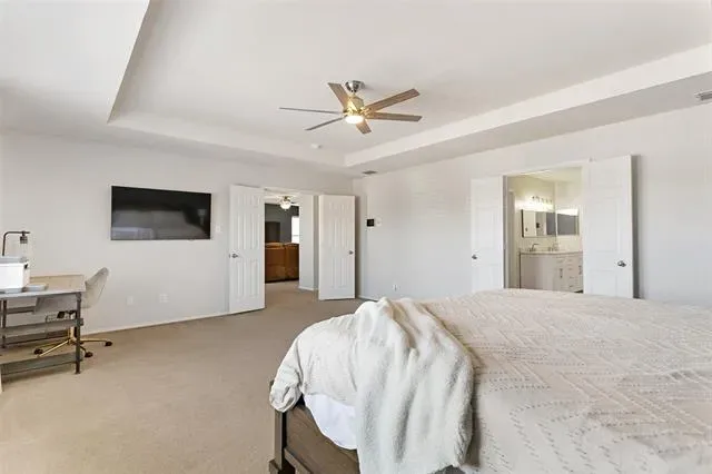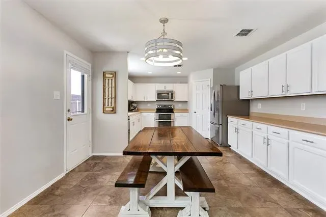 Step into this beautifully designed two-story home located in the highly sought-after Keller ISD. Offering 5 spacious bedrooms and 3 full bathrooms, this home perfectly blends comfort, functionality, and style. The open-concept floor plan creates an inviting atmosphere, ideal for both everyday living and entertaining. The kitchen is a true highlight, featuring sleek stainless-steel appliances, ample cabinetry, and elegant decorative lighting that adds a touch of sophistication. The thoughtfully designed layout includes two bedrooms downstairs, perfect for guests or a home office, while three additional bedrooms are located upstairs, providing privacy and flexibility for any lifestyle. The primary suite offers a relaxing retreat with a double vanity, as well as a separate soaking tub and walk-in shower for a spa-like experience. Backyard features covered patio, great for a family cookout. Close to dining and entertainment. Easy access to major roads and highways. With its modern features, spacious layout, and prime location, this home is a must-see!