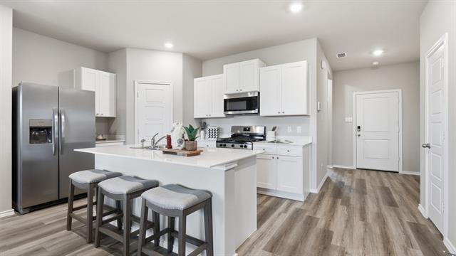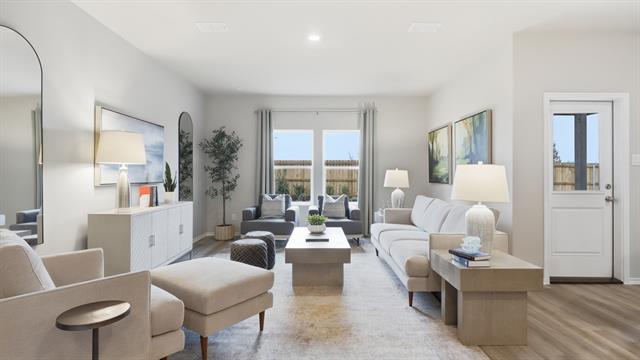 Beautiful new D.R. Horton home in the Meadowbrook Estates located in Cleburne and Cleburne ISD! The two-story Midland Floorplan, Elevation A, with an estimated Spring completion, offers 4 bedrooms, 3 bathrooms, a versatile loft, and a 2-car garage, thoughtfully designed to provide flexible living space for modern lifestyles. The main level features an open-concept layout where the family room, dining area, and contemporary kitchen connect seamlessly, creating an inviting setting for everyday living and entertaining. The kitchen is well-appointed with quartz countertops, 36” painted cabinets with hardware, stainless steel appliances, a gas range, stainless steel sink, center island, and a walk-in pantry for convenient storage. The private primary suite is located on the first floor and includes an en-suite bath with dual quartz vanities, a 5-foot oversized shower, and a walk-in closet located just off the bathroom. A secondary bedroom and full bathroom on the main level provide added flexibility for guests or a home office. Upstairs, a spacious loft offers a second living area, along with two additional bedrooms and a full bathroom featuring a quartz vanity top. Luxury vinyl plank flooring extends throughout the main living areas and wet zones, combining durability with easy maintenance. This home is built with energy-efficient construction and includes America’s Smart Home Technology for modern comfort and everyday convenience. Exterior features include a professional landscape package, full sprinkler system with rain sensor, privacy fencing, and more. Residents of Townes Landing enjoy convenient access to I-35W, making commuting to major employers, shopping, dining, and entertainment a breeze. Downtown Fort Worth is just a short drive away, and DFW International Airport is approximately 30 minutes from your doorstep, placing you right in the heart of Tarrant County living.