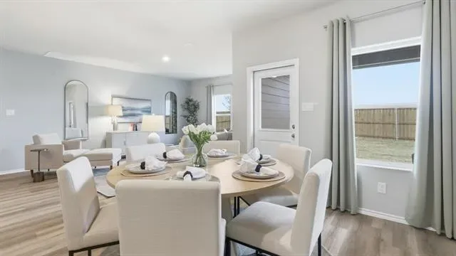 Beautiful new D.R. Horton home in the Townes Landing community located in Fort Worth and Everman ISD! The two-story Midland floorplan elevation A, with an estimated Summer completion, offers 4 bedrooms, 3 bathrooms, a versatile loft, and a 2-car garage, thoughtfully designed to provide flexible living space for modern lifestyles. The main level features an open-concept layout where the family room, dining area, and contemporary kitchen connect seamlessly, creating an inviting setting for everyday living and entertaining. The kitchen is well-appointed with quartz countertops, 36” painted cabinets with hardware, stainless steel appliances, a gas range, stainless steel sink, center island, and a walk-in pantry for convenient storage. The private primary suite is located on the first floor and includes an en-suite bath with dual quartz vanities, a 5-foot oversized shower, and a walk-in closet located just off the bathroom. A secondary bedroom and full bathroom on the main level provide added flexibility for guests or a home office. Upstairs, a spacious loft offers a second living area, along with two additional bedrooms and a full bathroom featuring a quartz vanity top. Luxury vinyl plank flooring extends throughout the main living areas and wet zones, combining durability with easy maintenance. This home is built with energy-efficient construction and includes America’s Smart Home Technology for modern comfort and everyday convenience. Exterior features include a professional landscape package, full sprinkler system with rain sensor, privacy fencing, and more. Residents of Townes Landing enjoy convenient access to I-35W, making commuting to major employers, shopping, dining, and entertainment a breeze. Downtown Fort Worth is just a short drive away, and DFW International Airport is approximately 30 minutes from your doorstep, placing you right in the heart of Tarrant County living.