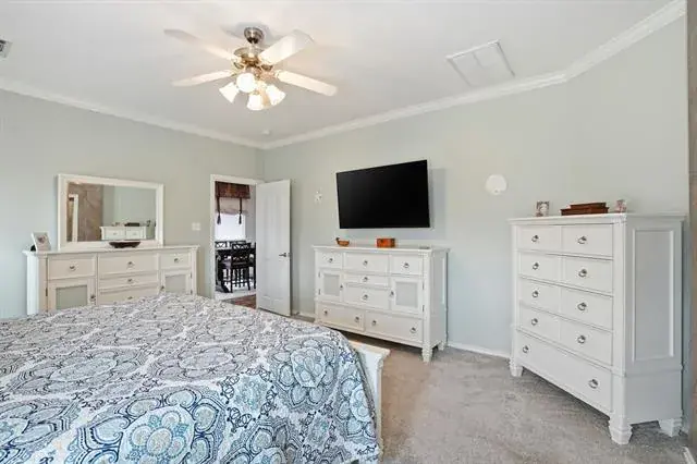 From first glance one will be taken in by this charming single-story home. A former DR Horton model and boasting 1749 sqaure feet of living, the property is sited on a premier corner lot in close proximity to the neighborhood pool and play ground. The functional floor plan offers an oversized family room, charming dining area, three bedrooms, two full bathrooms, a gourmet kitchen complete with light quartz counters, upgraded 42-inch oak cabinetry, subway tile backsplash, an undermount sink, and a gas drop-in range; a utility area with cabinetry, and an attached two-car garage with work bench and shelves. Quality abounds throughout the home with a large primary suite with crown molding and a luxurious bathroom, a second bedroom with a sitting area before bay windows, vaulted ceilings, gracious windows, luxury vinyl plank floorings, repainted interior, stone-trimmed flower beds, a water line to garage for a fridge, a plethora of storage and top-of-the line Leaf Guard rain gutters. The nicely landscaped backyard with stone back wall offers a relaxing screened-in patio, Trex deck, custom pergola, mature trees, a nice-sized storage shed, and an upgraded cedar wide-plank fence. This home feeds the award-winning Keller ISD and is located a short commute to major highways, local eateries and upscale shopping.