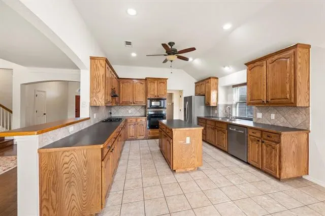 Welcome to this charming 1.5-story home in Keller ISD, designed with comfort and flexibility in mind featuring community pool. The open floorplan and neutral tones create a light, airy feel, while the living room fireplace adds a cozy touch. The kitchen is perfect for gatherings, offering a breakfast bar, island, gas cooktop, and plenty of storage with a walk-in pantry. The primary suite is a relaxing retreat with a beautifully updated bath, featuring a barn door, soaking tub, and natural stone finishes. With four bedrooms downstairs and a versatile upstairs Gameroom (or fifth bedroom) with its own bath and ample closet space. Step outside to a spacious, fenced backyard with a large covered patio —ideal for entertaining. Plus, enjoy an oversized two-car garage and access to community amenities like a pool, park, and playground!