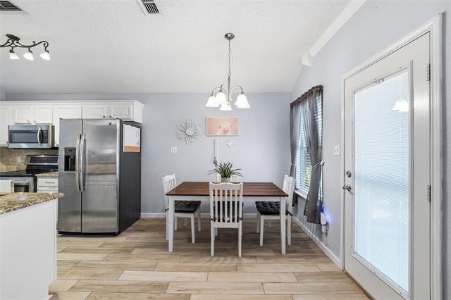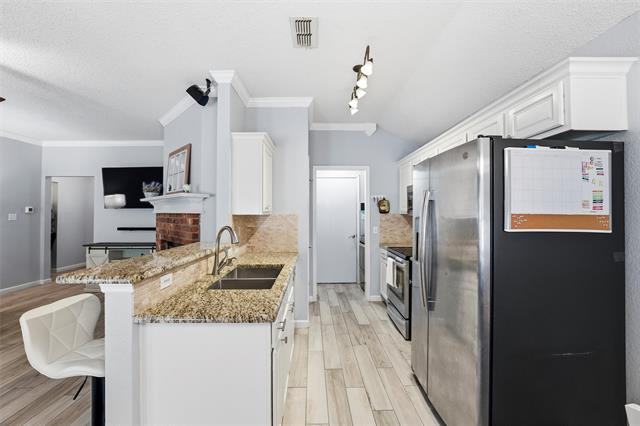 MOTIVATED SELLERS OFFERING $3000 IN CONCESSIONS TO BUY DOWN RATE OR HELP WITH CLOSING COST!!! Remodeled 3-2-2 in an unbeatable location close to everything you need! This home features an inviting open floor plan with a cozy corner fireplace, brick hearth, crown mantel, and sleek vinyl plank flooring throughout. The kitchen shines with stainless steel appliances, granite countertops, and a tumble marble backsplash. Enjoy added touches like crown molding and surround sound. The spacious primary suite offers dual sinks, a garden tub, separate walk-in shower, and generous walk-in closet. Outside, relax or entertain on the large Trex deck overlooking the fenced yard. With a two-car garage and modern updates already complete. Come see this home today!