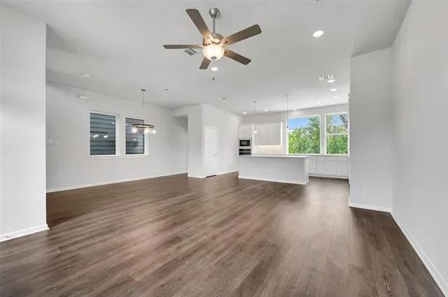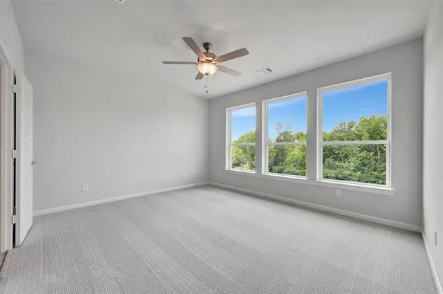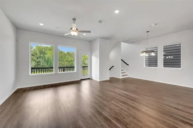 Experience luxurious living in this beautifully designed three-story villa in Trails at Waterside, featuring three spacious bedrooms and abundant natural light throughout. The second floor offers an inviting open layout with stylish finishes and a family room that opens to a private balcony—perfect for relaxing or entertaining.