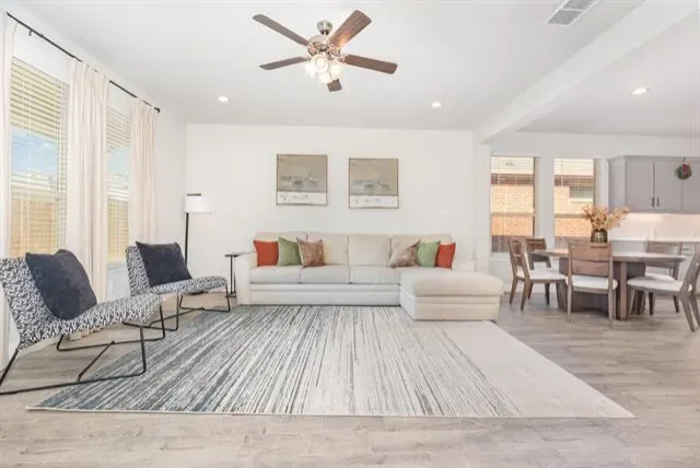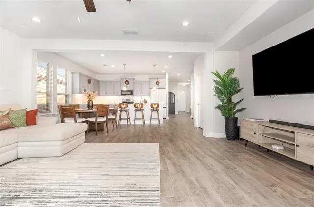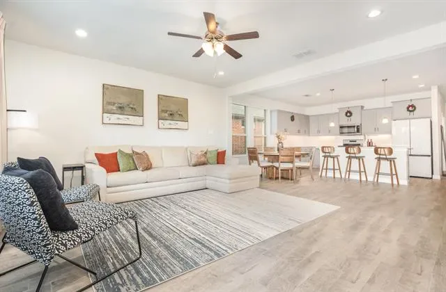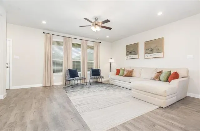 ASSUMABLE LOAN WITH 5.12% INTEREST RATE! Welcome to this stunning single-story home offering 4 spacious bedrooms plus a dedicated office, perfect for work-from-home or a creative space. Step inside to a bright open floorplan highlighted by tall ceilings and wood-look tile floors that combine style with durability. A welcoming entryway sets the tone as you arrive, adding a touch of elegance and warmth. The heart of the home is the modern chef’s kitchen, featuring sleek quartz countertops, ample storage, painted cabinets, crisp white herringbone patterned backsplash, a walk in pantry, and a gas range cooktop ideal for cooking enthusiasts. The seamless flow from kitchen to living and dining areas creates an inviting space for everyday living and entertaining. Each bedroom is generously sized, providing comfort and flexibility for family, guests, or hobbies. Located in the desirable Trails of Elizabeth Creek subdivision which features a resort style pool, lazy river, community clubhouse for hosting, playgrounds, and miles of walking trails! This neighborhood also provides tons of social events offering new families the chance to meet neighbors and build lasting friendships. The brand new Hatfield Elementary is in walking distance! Northwest ISD! The location right off 114 makes commuting a breeze! Only 5 minutes from Tanger Outlet mall, 20 minutes to Southlake, and 15 minutes to Alliance! Low tax rate and no PID or MUD tax. With its thoughtful layout, quality finishes, contemporary design, and superb location, this home is the perfect blend of comfort and functionality—ready for you to move in and enjoy.