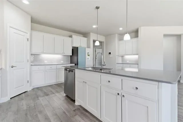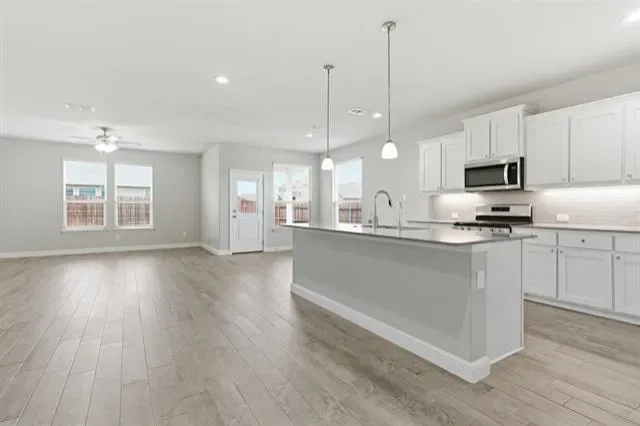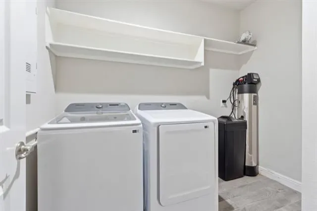 Beautifully maintained 4-bedroom, 2-bath home in the sought-after Trails of Elizabeth Creek! 2-car front entry Faces East. Wood-looking ceramic tile in most of house, carpet in bedrooms. Kitchen has quartz countertops, white cabinets, SS gas stove, large island. Master has dual sinks, walk in closets, garden tub. Mud area near garage. Garage floor has epoxy painted floor. HOA amenities including a clubhouse, community pool, park, and playground.