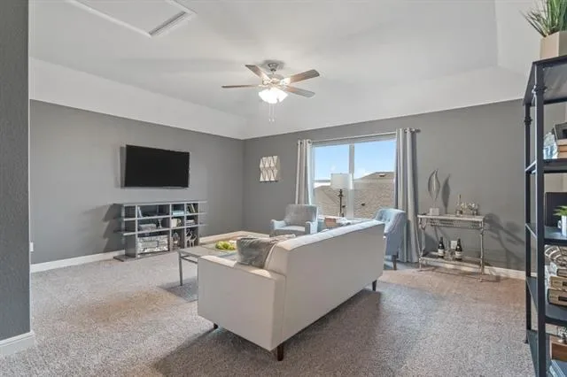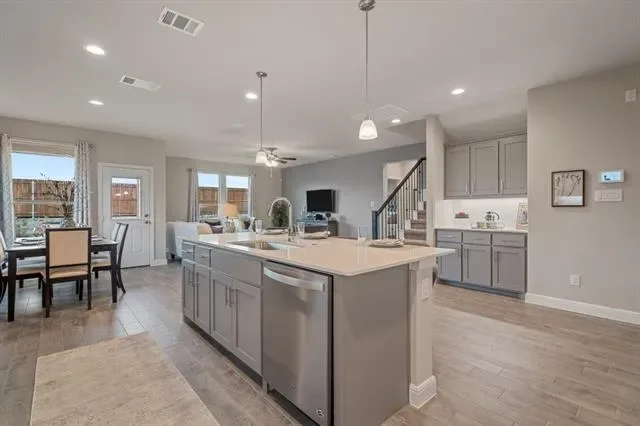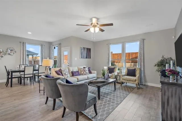 Builder’s former model home now for sale. Like new and never lived-in. Final opportunity in D.R. Horton’s master planned community Trails of Elizabeth Creek in North Fort Worth and Northwest ISD! The Santa Fe plan is a two story home featuring approx 2,766 sq. ft. of living space with 5 bedrooms, 3 full bathrooms, large open concept living-dining- kitchen, butler pantry, stainless steel appliances with gas cooking range, pendant lights over large kitchen island, garden tub and walk-in shower in Bath 1 plus large walk-in closet, upstairs game room, mud bench, covered patio and 2 car garage on a corner lot! The Santa Fe includes our America’s Smart Home Technology base package. Using one central hub that talks to all the devices in your home, you can control the lights, thermostat and locks, all from your cellular device. Covered back Patio, Landscape Package with full sod, Sprinkler System. Community Pool, Cabana, Park, Tot Lot and Lazy River. Near I-35W, 114, TMS, Shops, Dining and more!