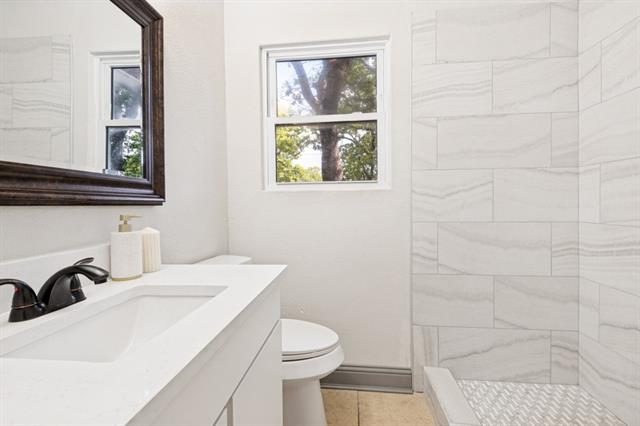 The kitchen has been updated with new countertops, backsplash, and cabinetry, providing ample workspace and storage. The bathroom has been remodeled with an updated vanity, fixtures, and finishes.