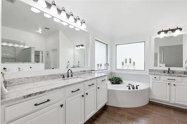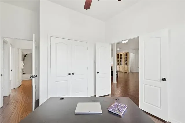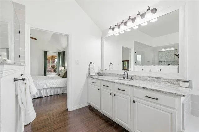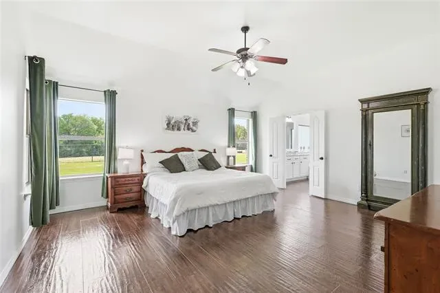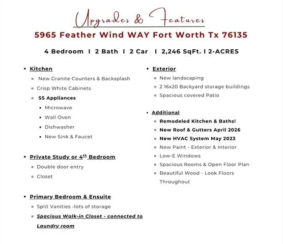 The primary suite is a true standout, featuring a bright bedroom and a remodeled bath with an oversized shower. For ultimate convenience, the primary closet offers direct access to the laundry room! If you work from home, the fourth bedroom features French doors and a walk-in closet, making it an ideal office. Outside, the large covered patio is finished with tile and dual ceiling fans, creating a perfect spot to relax while looking out over the fenced backyard and the scenic wooded tree line. With a black chain-link enclosure for pets and kids, two storage sheds for tools, hobbies, or workshop – this move-in-ready property offers the room to breathe you’ve been looking for! Schedule your tour today! NEW ROOF &' Gutters APRIL 2026!